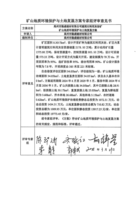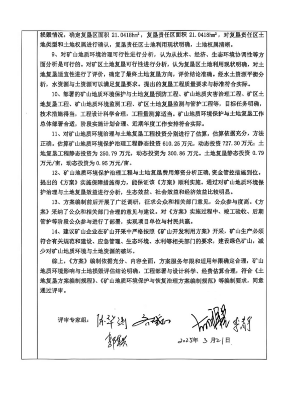 矿山地质环境保护与土地复垦方案评审结果 2025001号公告