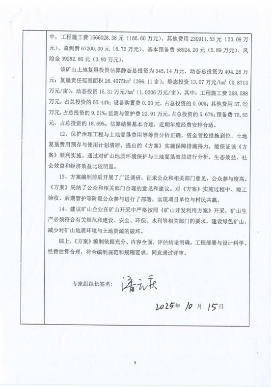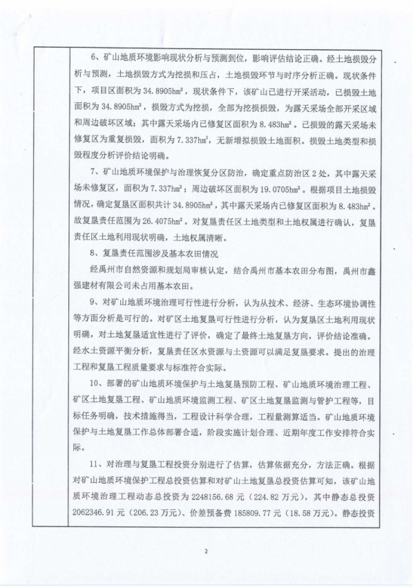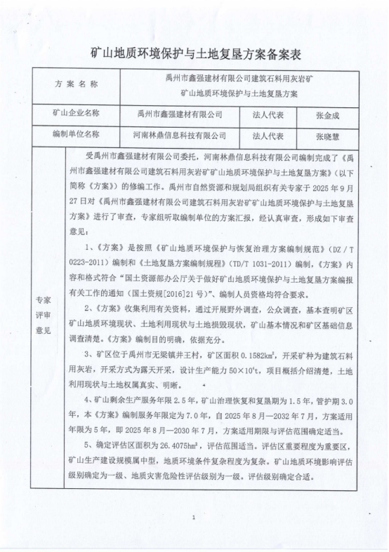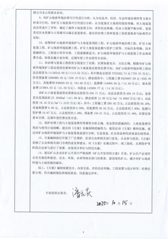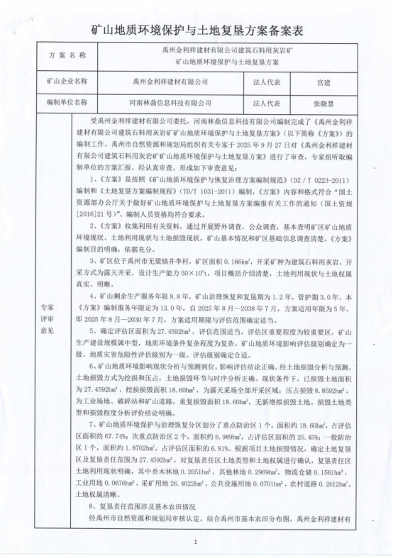 附:1、矿山地质环境保护与土地复垦方案评审意见