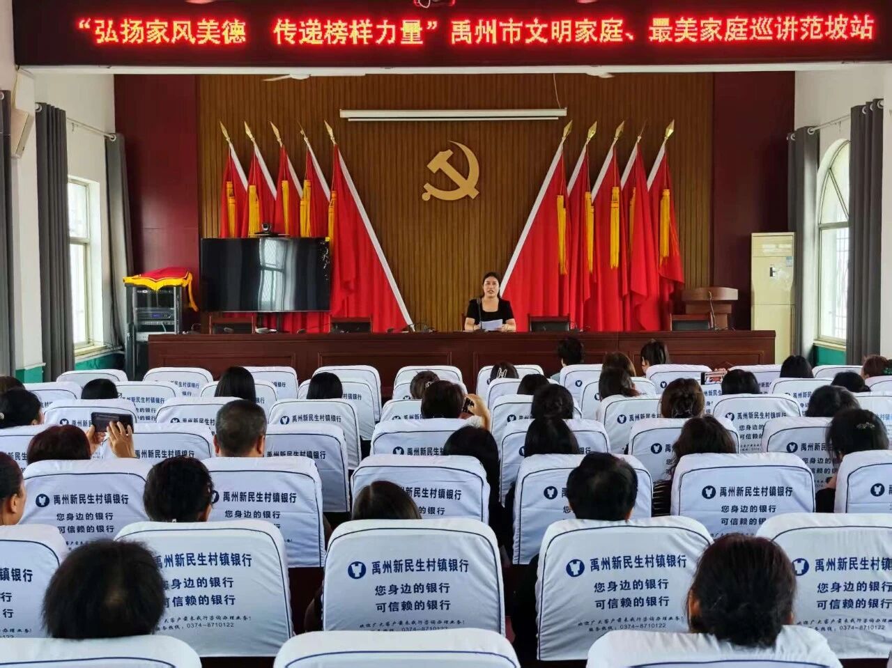 9月10日,由市精神文明建设促进中心、市妇联联合主办的?“弘扬家风美德,传递榜样力量”禹州市文明家庭、最美家庭巡讲活动(第十六场)走进范坡镇,为全镇干部群众带来了一场温暖且富有教育意义的精神盛宴。活动现场,三位来自不同领域却同样有着动人故事的嘉宾依次登台,分享她们的家风故事。