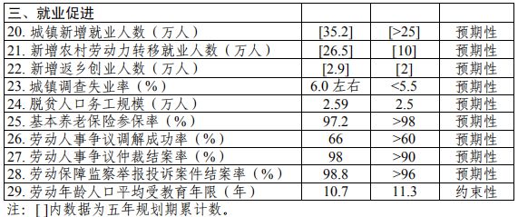 ——就业形势总体平稳。城镇新增就业25万人以上,新增农村劳动力转移就业10万人以上,城镇调查失业率控制在5.5%以内,高校毕业生、农民工等重点群体就业保持稳定,劳动力市场供求基本平衡。