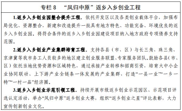建立各类人才定期服务乡村制度。实施青年返乡“春雁”行动、农村青年致富带头人“领头雁”计划,促进青年人才返乡下乡。完善科研人才到乡村和涉农企业创新创业支持政策,引导离退休党员干部、知识分子和工商界人士服务乡村振兴,支持专业技术人才通过项目合作、短期工作、兼职等多种形式到基层开展服务活动。