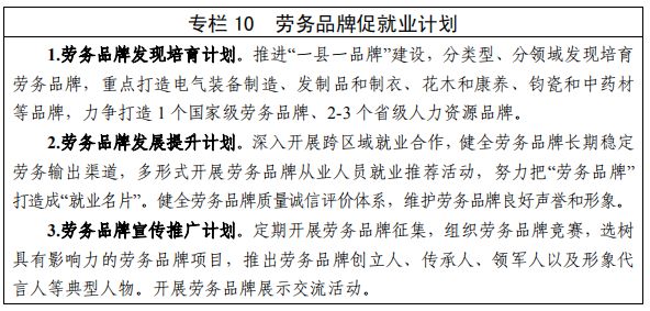 稳定和扩大外出就业规模。持续开展“春风行动”专项服务活动,举办农民工专场招聘会,送岗位下乡进村入户。建立健全对外劳务协作长效机制,加强与长三角、珠三角、京津冀等我市农民工输出重点地区合作,建立常态化的跨区域岗位信息共享和发布机制,培育和发展乡镇、村级劳务组织和经纪人,有序组织农村劳动力外出务工。培育一批有地域特色、行业特征、技能特点,带动农村劳动力就业效果好的劳务品牌。实施农民工素质提升工程,强化农村劳动力技能培训。
