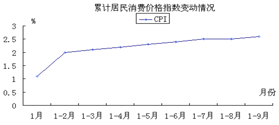 (七)物价水平稳中有涨。前三季度全市居民消费价格指数(CPI)同比上涨2.6%,较1-8月上涨0.1个百分点。居民消费八大类价格指数呈不同程度上涨:食品类上涨6.5%,烟酒及其用品类上涨1.7%,衣着类上涨1.5%,家庭设备用品及维修服务类上涨0.1%,医疗保健及个人用品类上涨0.8%,居住类上涨1.4%,娱乐教育文化用品及服务类上涨0.8%,交通和通信类上涨0.2%。